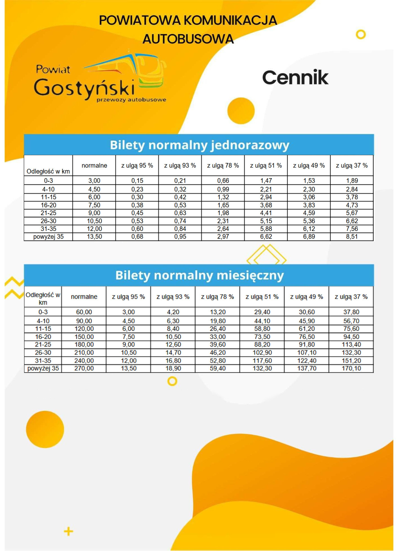 Szczegółowy rozkład jazdy oraz cennik znajduje się w załącznikach.